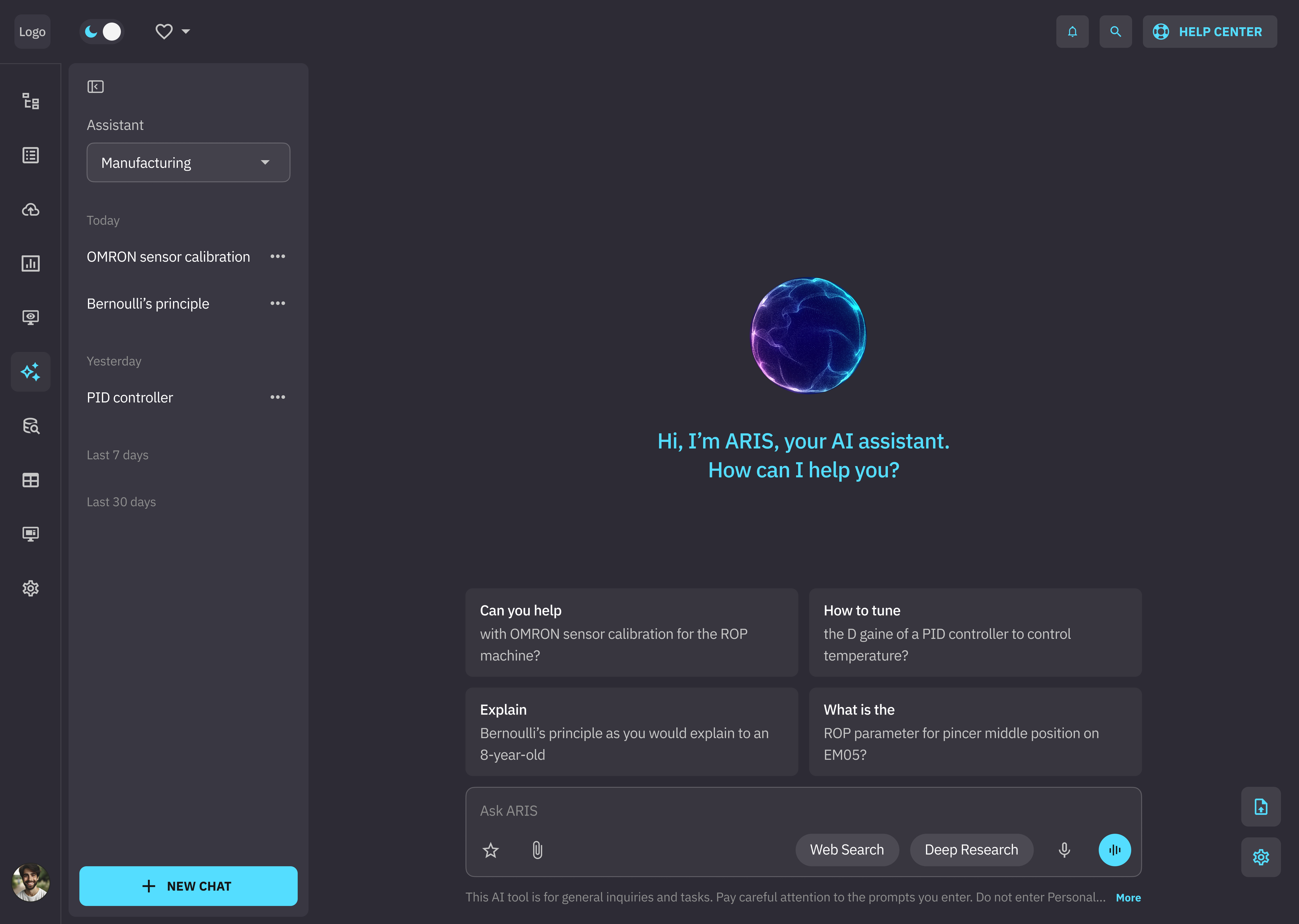 An intuitive UI to interact with the Gen AI-powered MES assistant