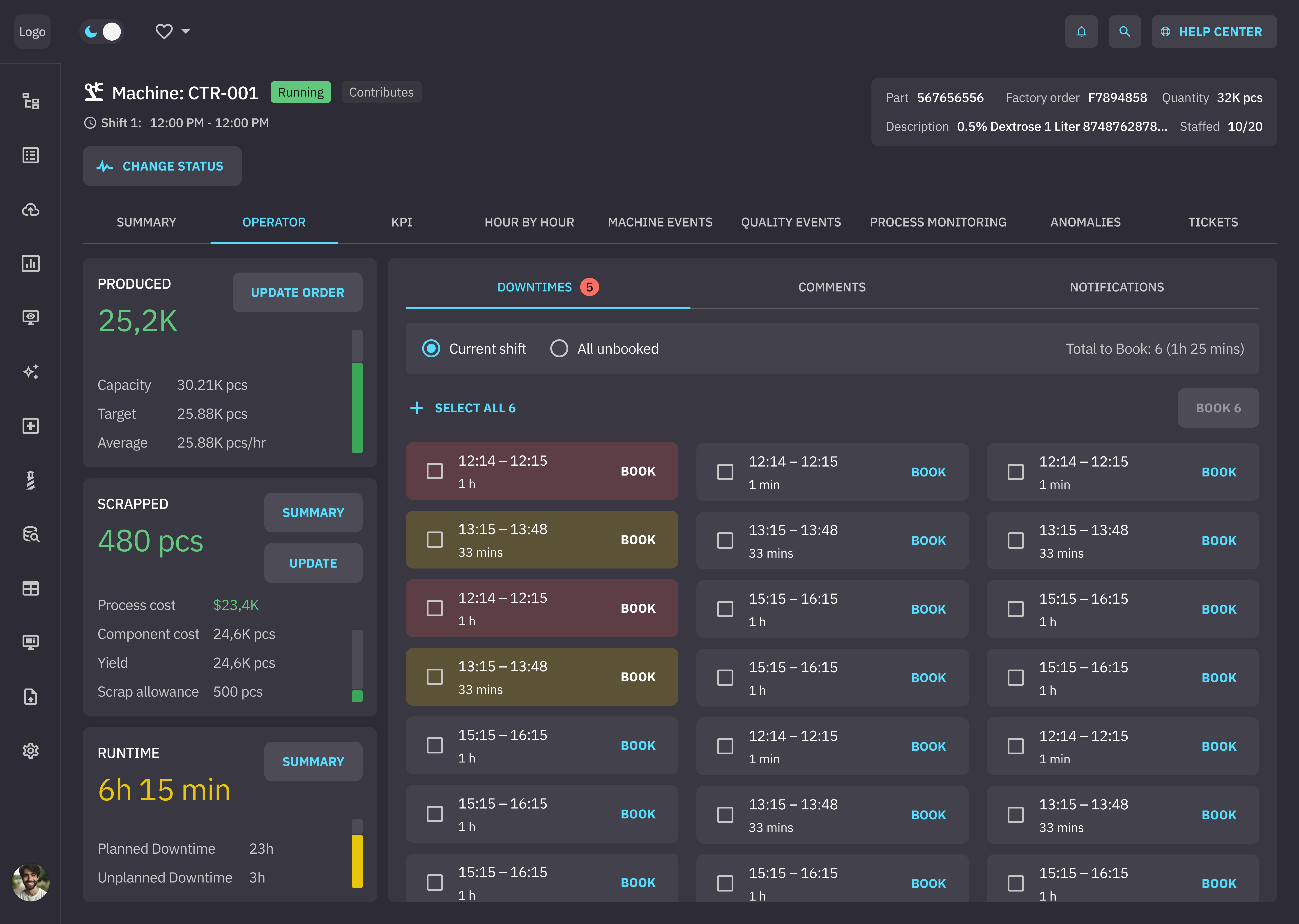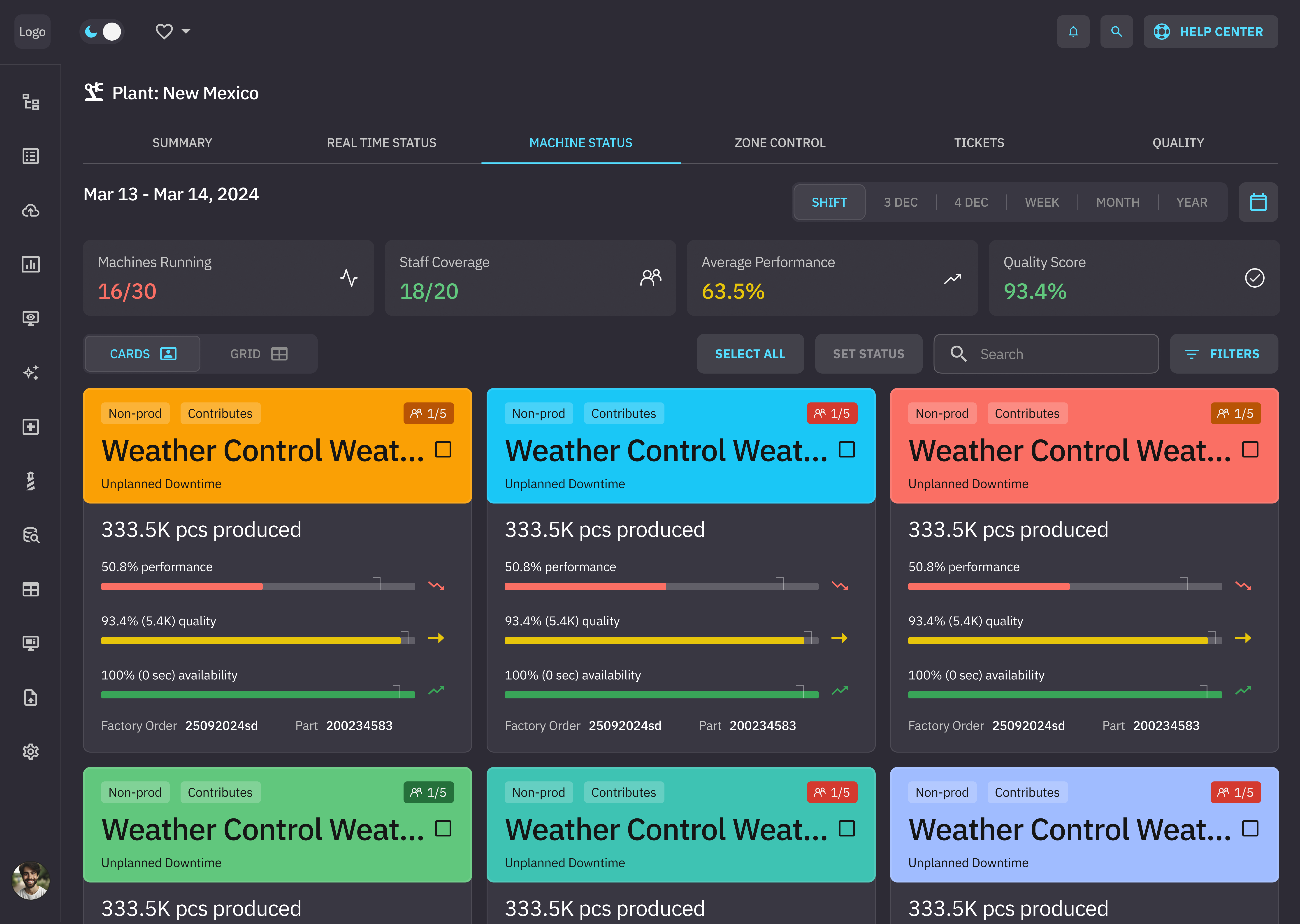 The UI also supports standardized dashboards displaying statistics on machine performance. Factory managers can ask questions about these stats and their implications in natural language. They can query machine statistics and KPIs and receive structured answers inside the assistant—without switching tools.